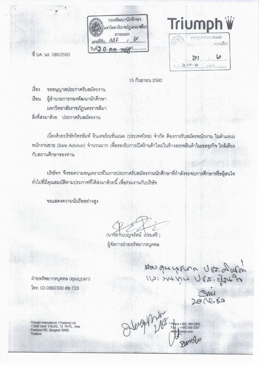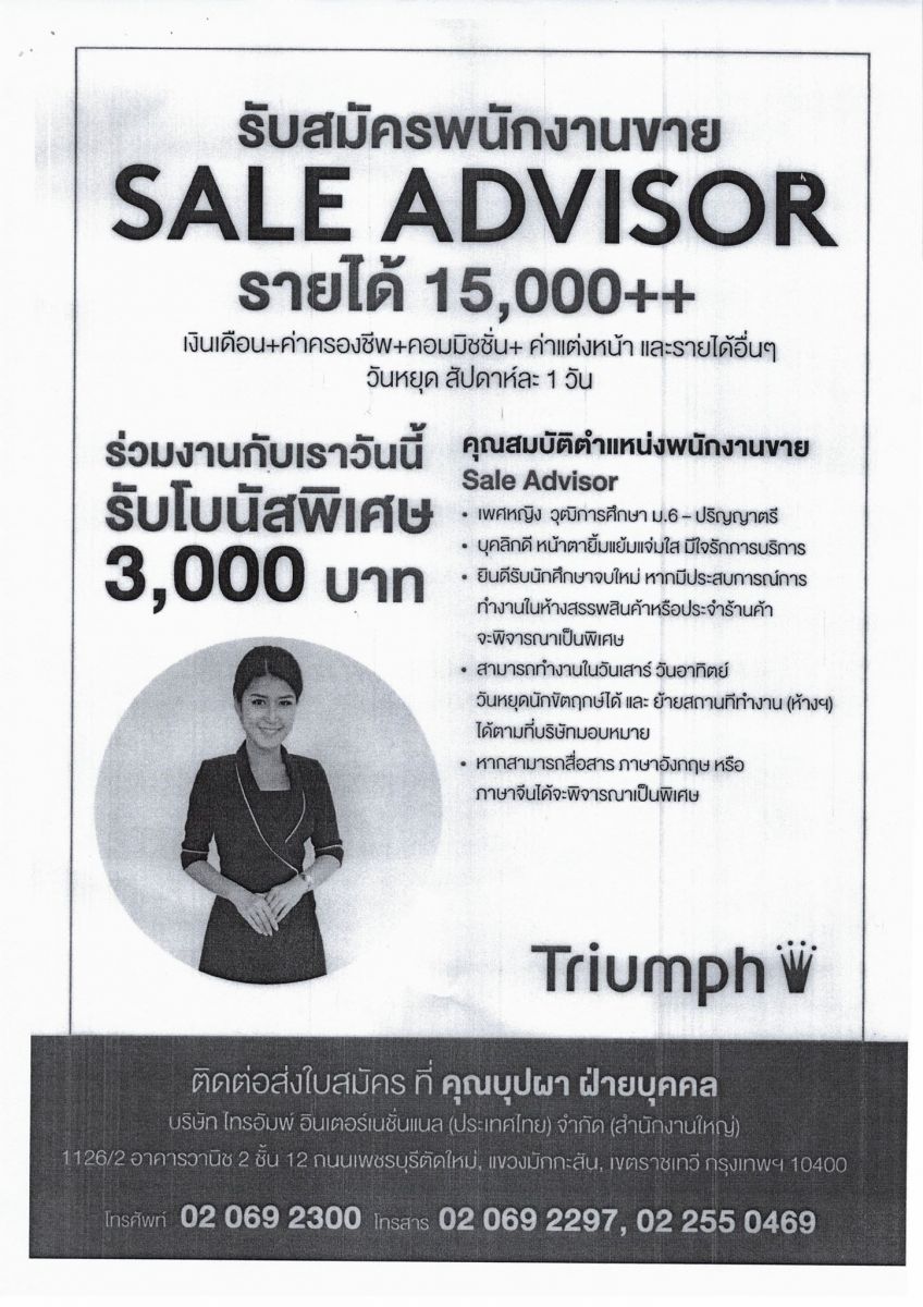 บริษัทไทรอัมพ์ อินเตอร์เนชั่นเนล (ประเทศไทย) จำกัด รับสมัครพนักงาน ในตำแหน่งพนักงานขาย
