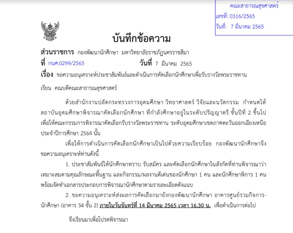 ประชาสัมพันธ์และคัดเลือกนักศึกษาเพื่อรับรางวัลพระราชทาน