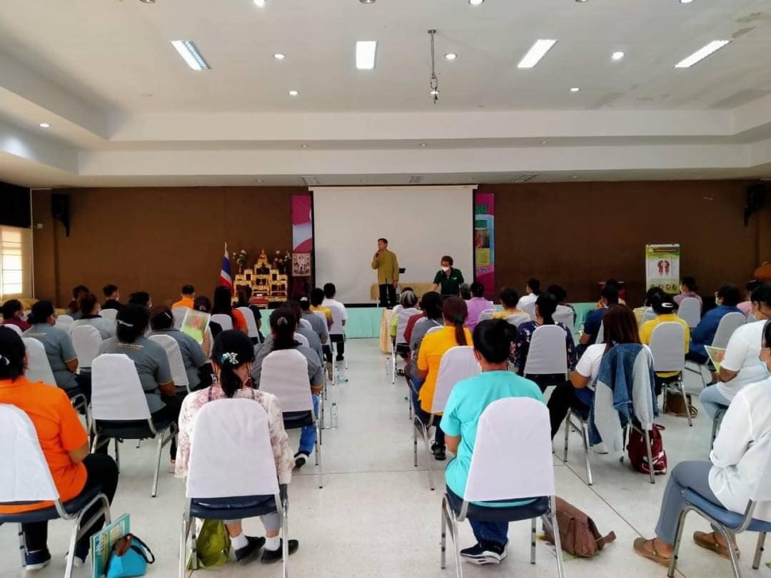 ทีมวิทยากรจากคณสาธารณสุขศาสตร์ ให้ความรู้เกี่ยวกับการปฏิบัติตนตามหลัก 4อ. (ยา 8 ขนาน) เพื่อจัดการโรคไม่ติดต่อเรื้อรัง ให้กับกลุ่ม อสม. เจ้าหน้าที่จาก รพ.สต.