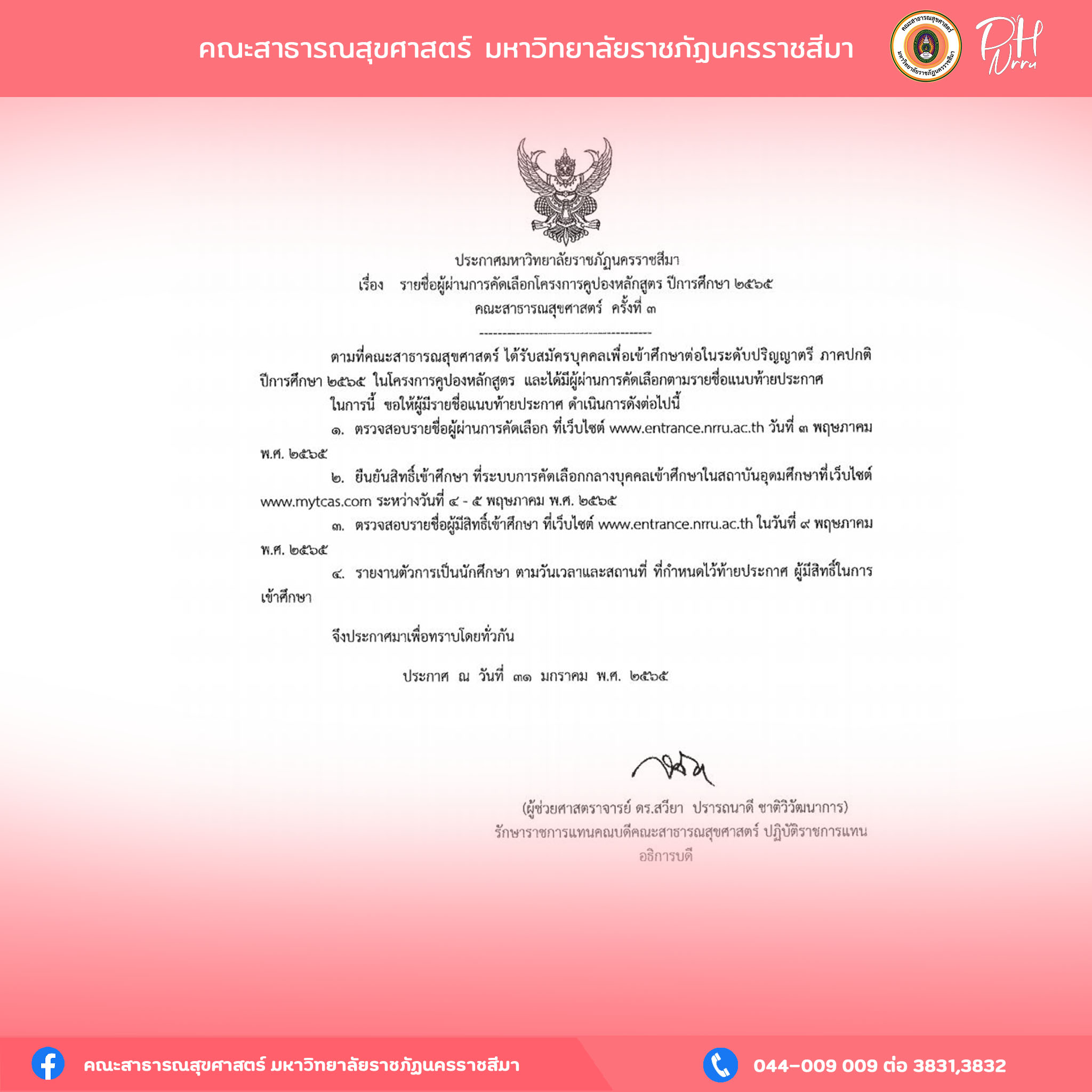 ประกาศรายชื่อผู้ผ่านการคัดเลือกโครงการคูปองหลักสูตร ปีการศึกษา 2565 คณะสาธารณสุขศาสตร์ ครั้งที่ 3