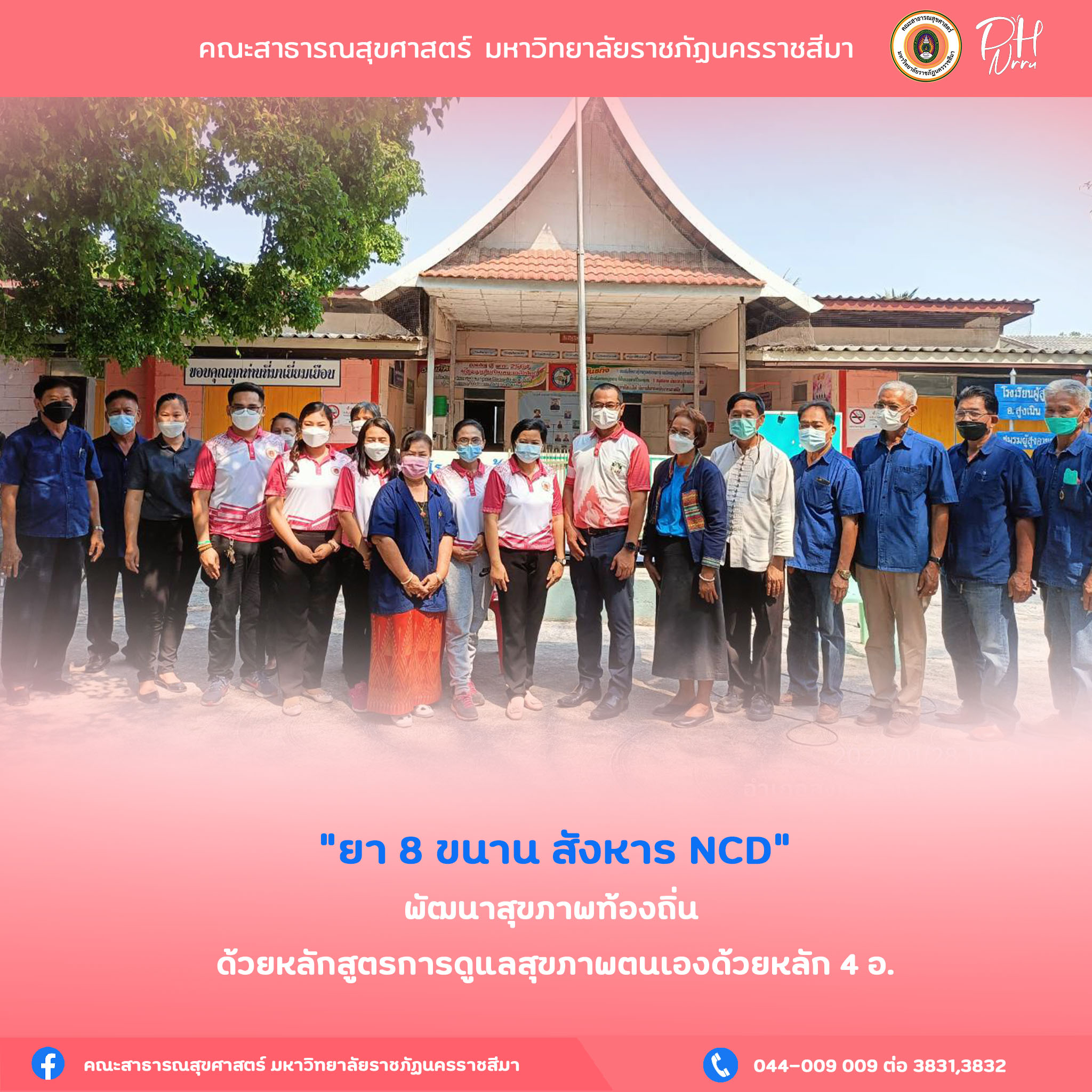 บริการวิชาการเพื่อการพัฒนาสุขภาพท้องถิ่น ด้วยหลักสูตรการดูแลสุขภาพตนเองด้วยหลัก 4 อ. "ยา 8 ขนาน สังหาร NCD"