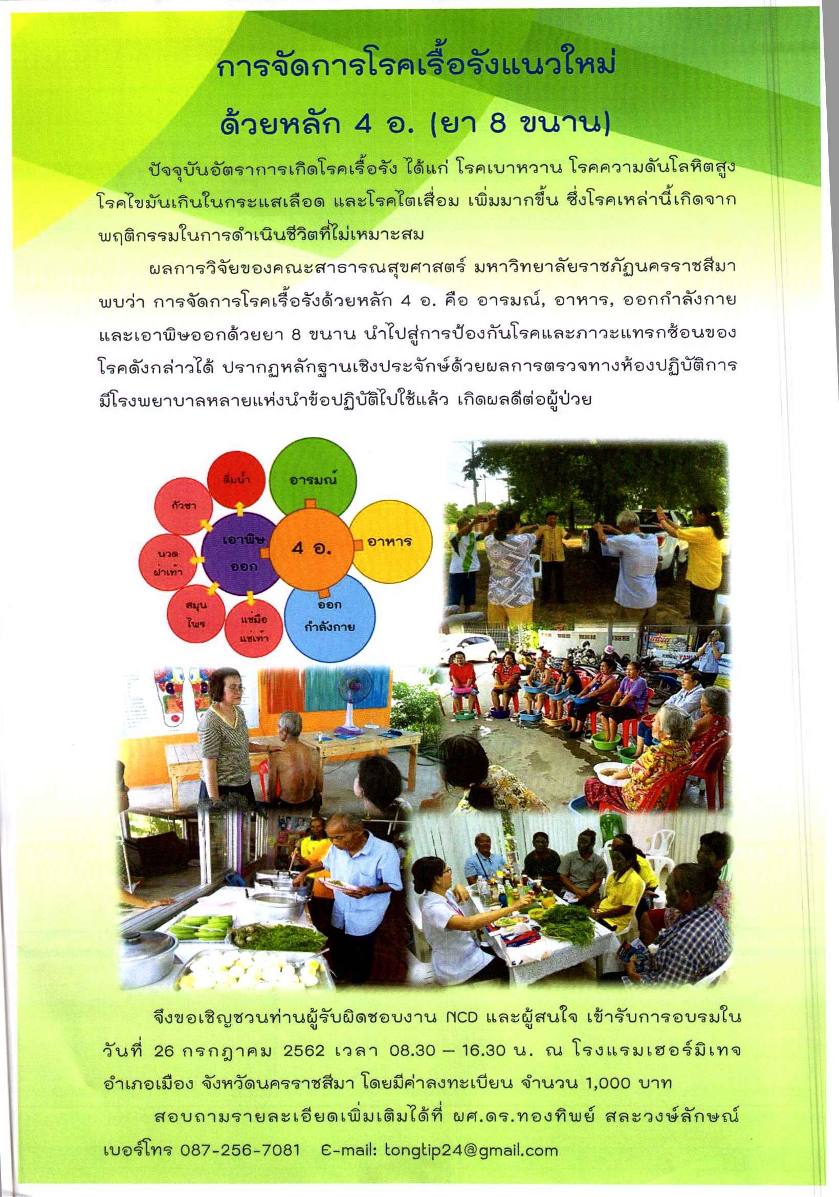 การอบรมการพัฒนาศักยภาพผู้สูงอายุ ที่เป็นโรคไม่ติดต่อเรื้อรังเพื่อป้องกันภาวะแทรกซ้อน โดยใช้หลักปฏิบัติ 8 ประการ