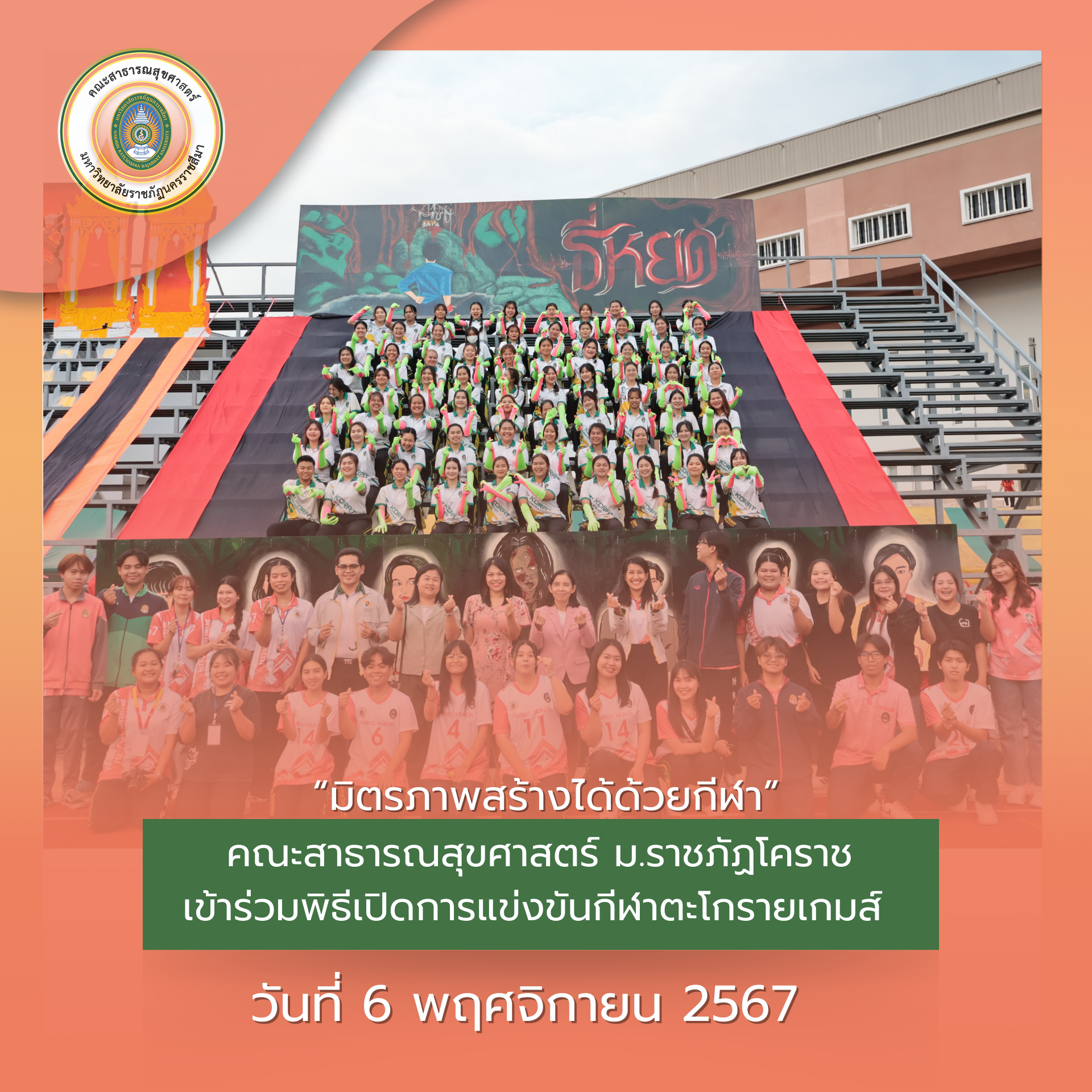 “มิตรภาพสร้างได้ด้วยกีฬา” คณะสาธารณสุขศาสตร์ ม.ราชภัฏโคราชเข้าร่วมพิธีเปิดการแข่งขันกีฬาตะโกรายเกมส์