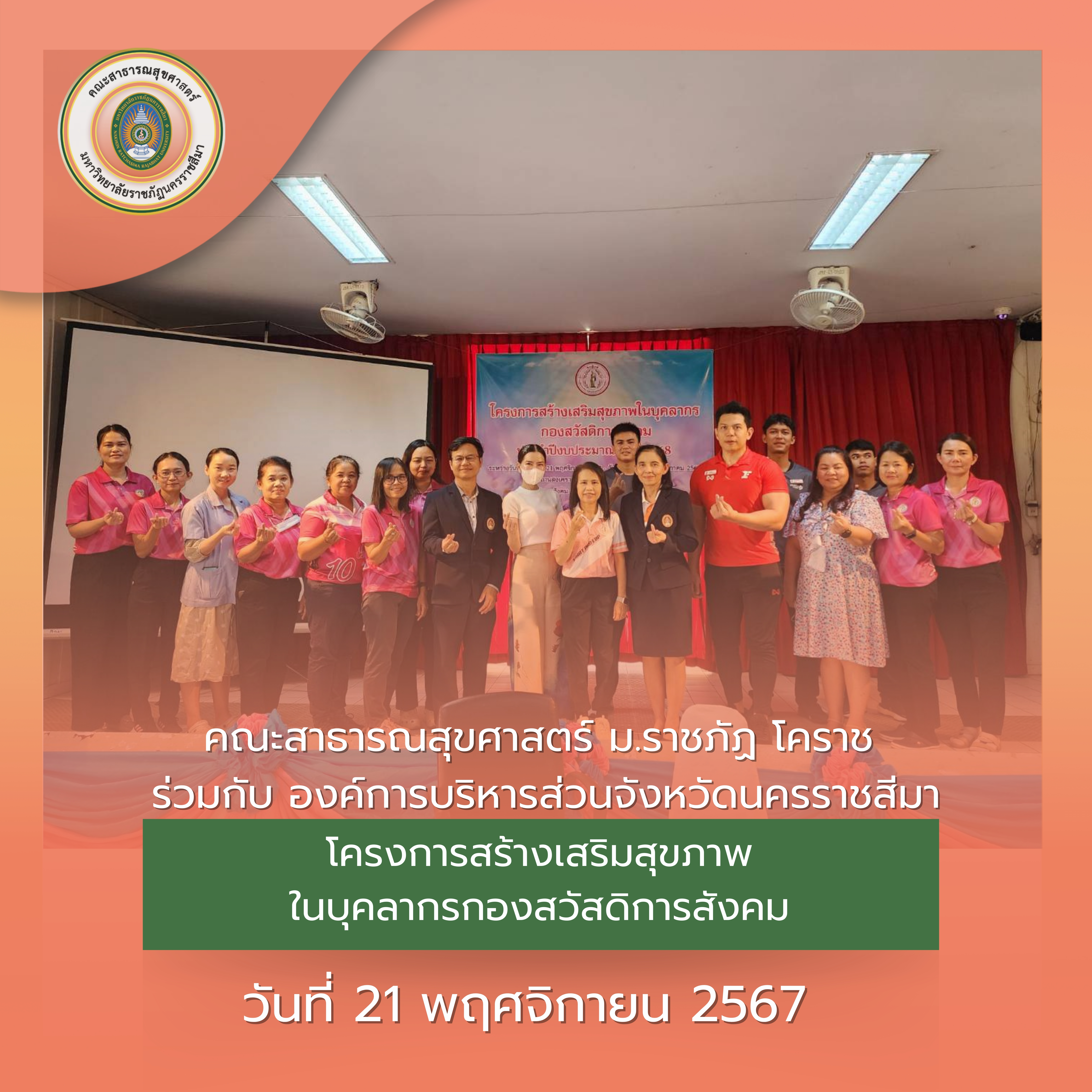 โครงการสร้างเสริมสุขภาพ ในบุคลากรกองสวัสดิการสังคม คณะสาธารณสุขศาสตร์ ม.ราชภัฏ โคราช ร่วมกับ องค์การบริหารส่วนจังหวัดนครราชสีมา
