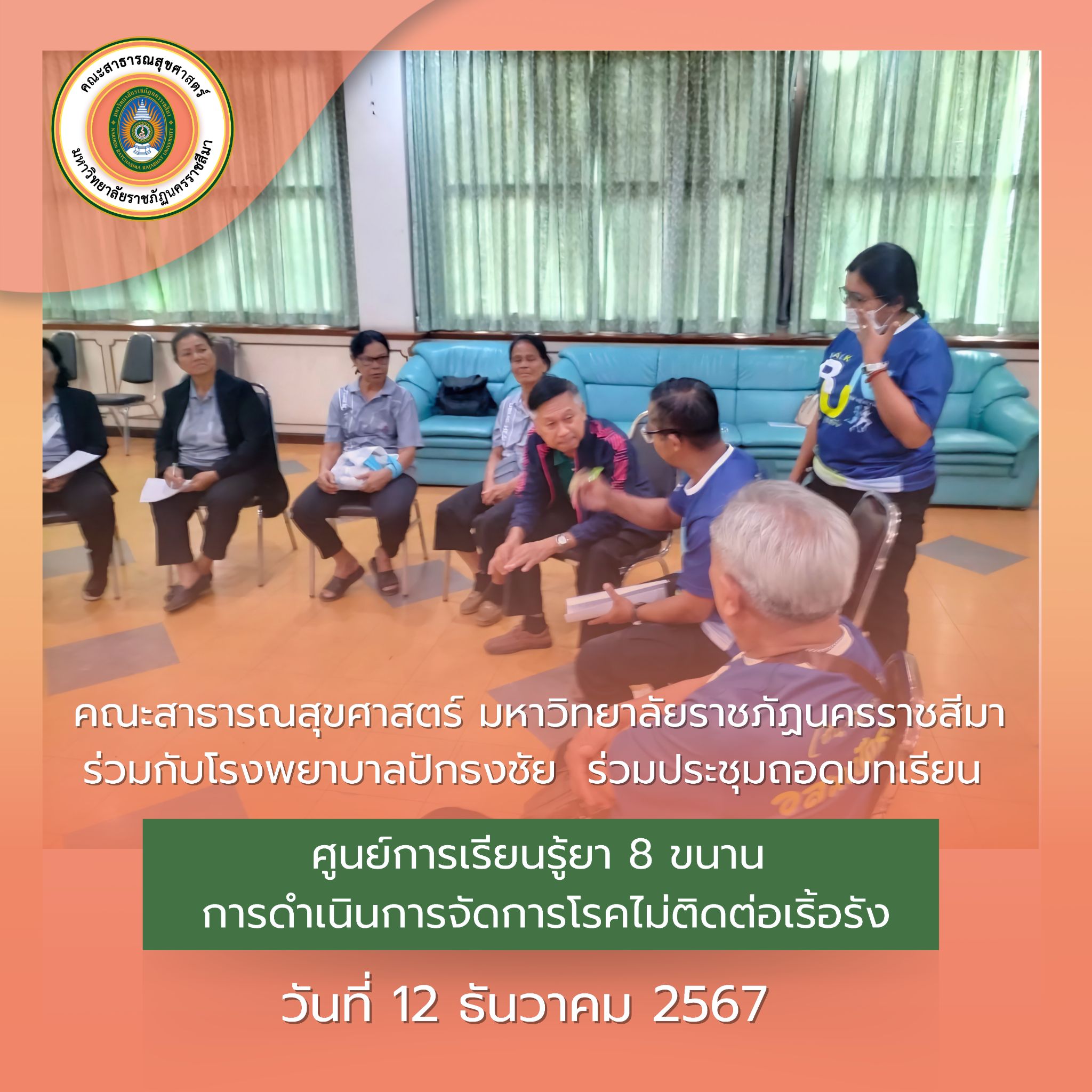 มหาวิทยาลัยราชภัฏนครราชสีมา ร่วมกับโรงพยาบาลปักธงชัย ร่วมประชุมถอดบทเรียน ศูนย์การเรียนรู้ยา 8 ขนาน การดำเนินการจัดการโรคไม่ติดต่อเริ้อรัง