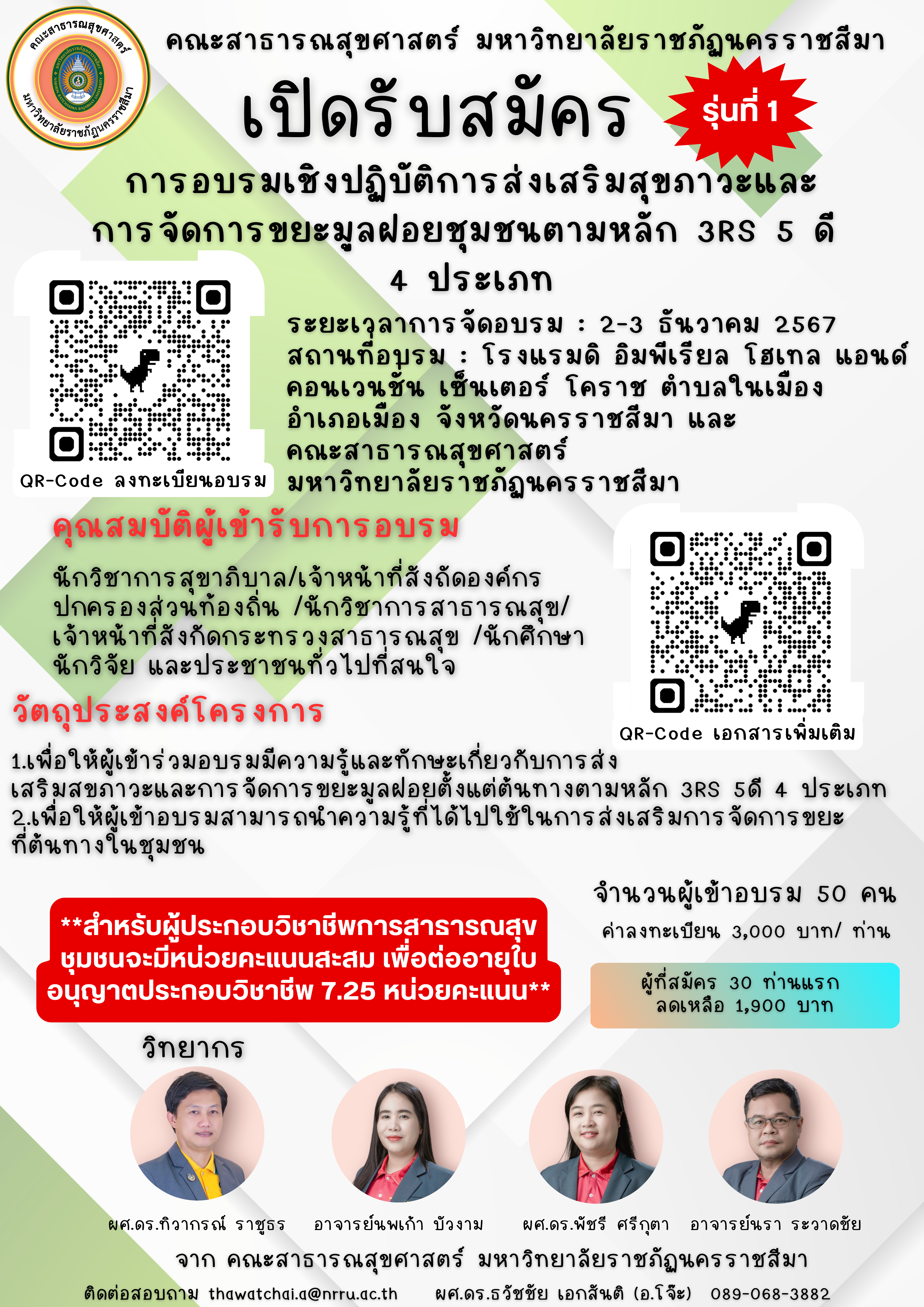 คณะสาธารณสุขศาสตร์ ขอแสดงความยินดีกับบุคลากรผู้ได้รับทุนวิจัยจากสำนักงานคณะกรรมการส่งเสริมวิทยาศาสตร์ วิจัยและนวัตกรรม (สกสว.) ประเภท Fundamental Fund ประจำปีงบประมาณ พ.ศ. 2568จากแผนงานที่ 5 การวิจัยและนวัตกรรมเพื่อรองรับการท่องเที่ยว จากมูลค่าเพิ่มของภูมิปัญญาท้องถิ่น ศิลปวัฒนธรรม และยกระดับคุณภาพชีวิตของสังคมผู้สูงวัย จำนวน 4 โครงการ